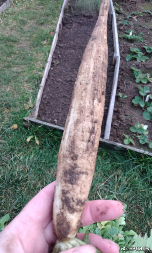 Успела и дайкон собрать на последней неделе. Чуть ли не снег уже, а у меня дайкон на грядке! Жуть!
