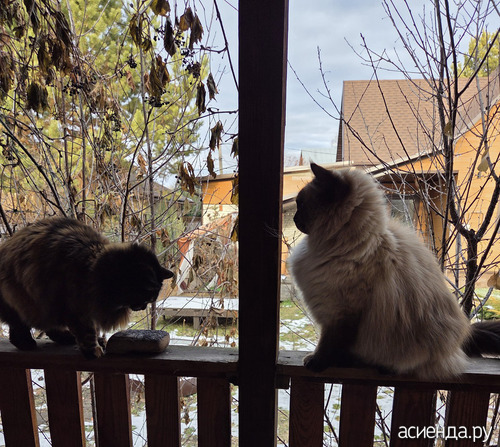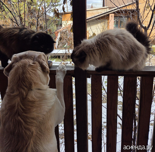 Весь день пасмурно, ветер не перестает, раскалилось до. +4,6*. Почти весь снег растаял, Хонина горка в половину осела.