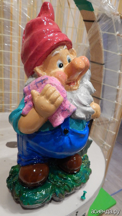 Снова покрытие яхтным лаком и вот уже совсем веселый гномик получился.