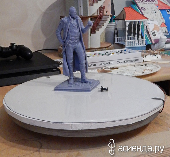 Из них были сделаны поворотные столы. Маленький шкив был насажен на подшипник и получился поворотный министолик для работы с миниатюрами. Этими работами занимается Катя.