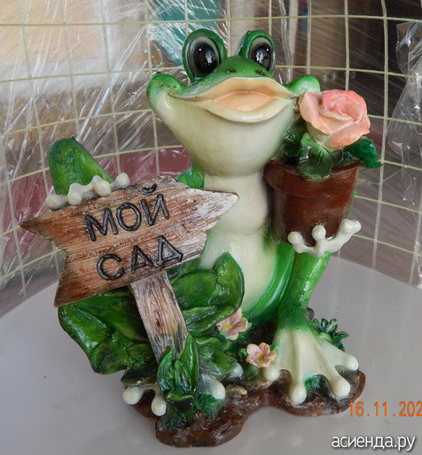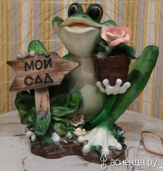 Вернее садовой фигуркой была только лягушка, она из полимера, и не очень пострадала от погодных условий и старания собак все свое пометить.