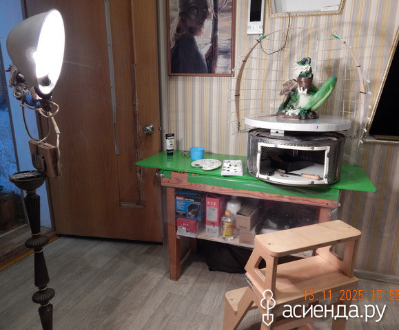 Толкнул пальцем и стол крутится, не надо переставлять и поворачивать сам объект реставрации.