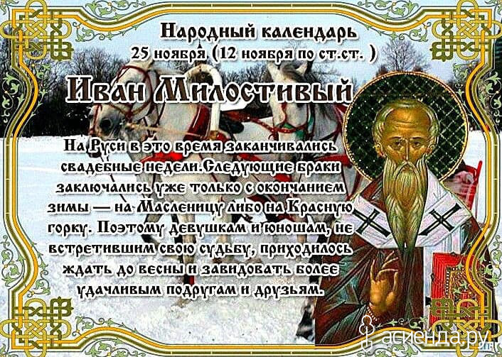 ПРИМЕТЫ НА 25 НОЯБРЯ: