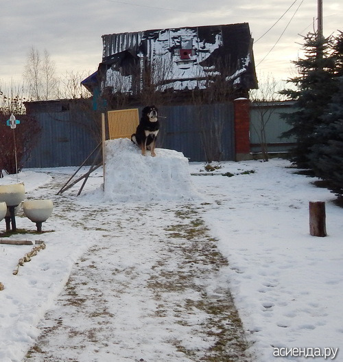 Горка Хонина немного подмерзла, уже угнездился на ней.