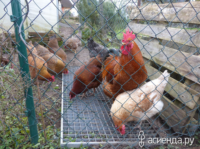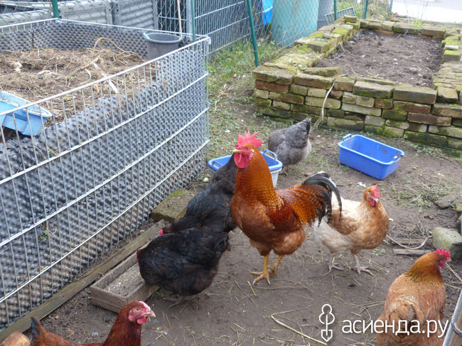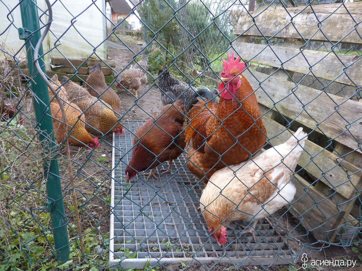 От черно-белого полосатого петушка Феди пришлось избавиться. Рыжик остался во главе стаи. В связи с эпидемией птичьего гриппа пришлось пернатых в вольере держать. 14 куриц и Рыжик на 18 кв. метрах. Вроде и не так мало, но, конечно, уборки прибавилось. И убирала по два раза в день и сено подсыпала. Лишь бы у них сухо и чисто было.