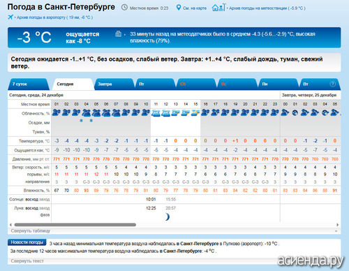 Народный календарь. Дневник погоды 24 декабря 2025 года