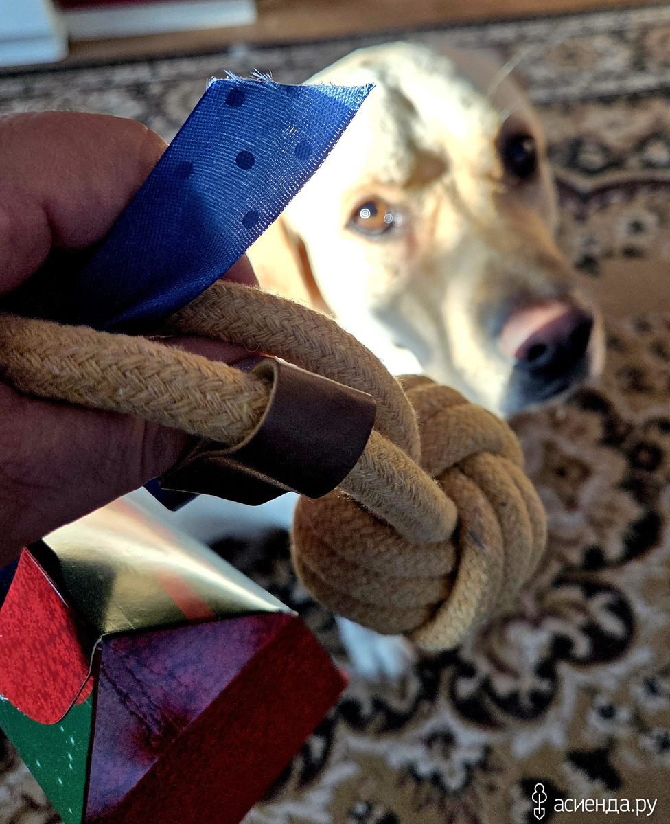 Сегодня ездили в город за посылочкой. Немо ездил с нами, вел себя хорошо. Дома Немочка сел, держал себя в лапках и ждал подарочки. И, конечно, за примерное поведение первый подарочек сразу для Немика оказался: канатик-перетяжка и вкусняшки – сухие вымя и легкое!