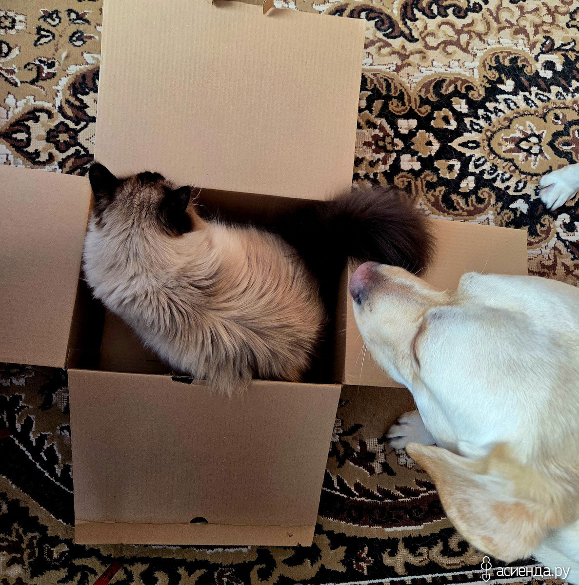 Пока Хоня с Бирбалом важно обходят периметр дозором, Снежок уже не один круг "нарезал"