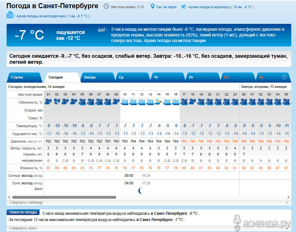 12 января ночью температура воздуха опустится до -9 градусов, днем -10 и понижение температуры до -16. А завтра уже -32!