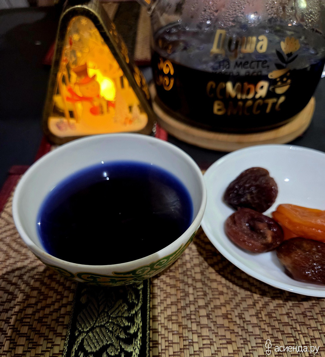 Выбрали с интересным названием "Анчан" - "это чай из клитории, имеет необычный насыщенный синий цвет, который при добавлении лимона превращается в фиолетовый... содержит множество витаминов, минералов и антиоксидантов, которые благотворно влияют на организм (для улучшения зрения, иммунитета, омолаживающего эффекта..."