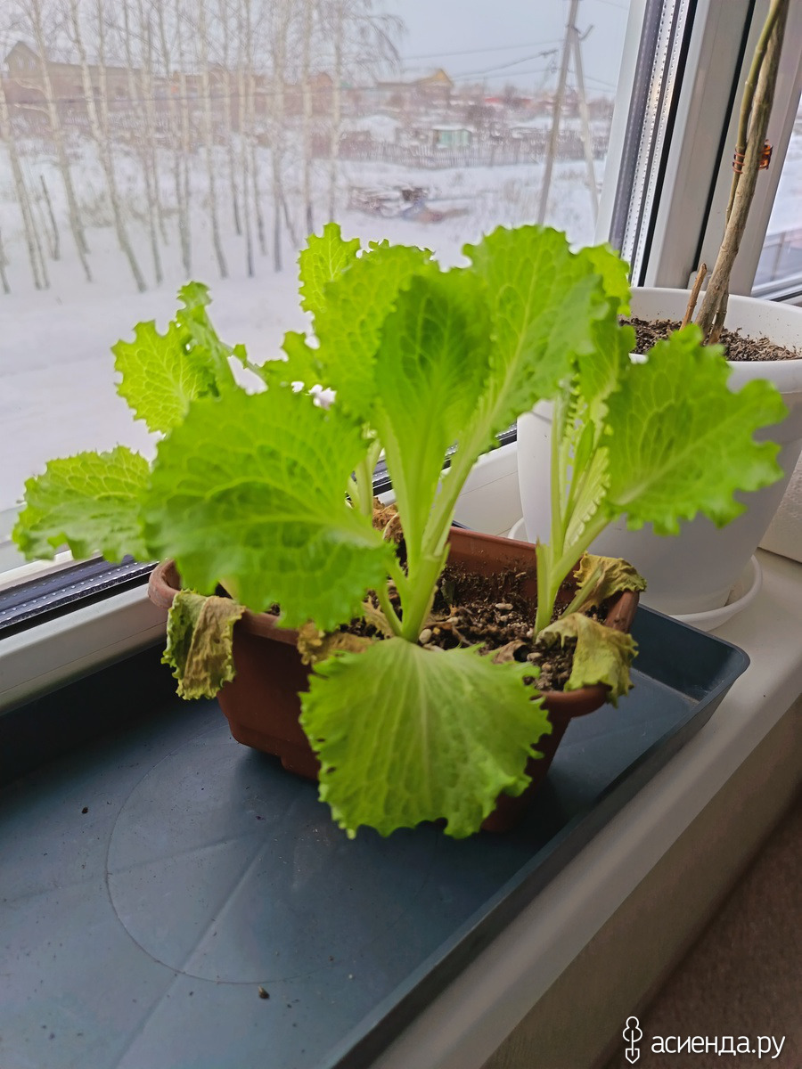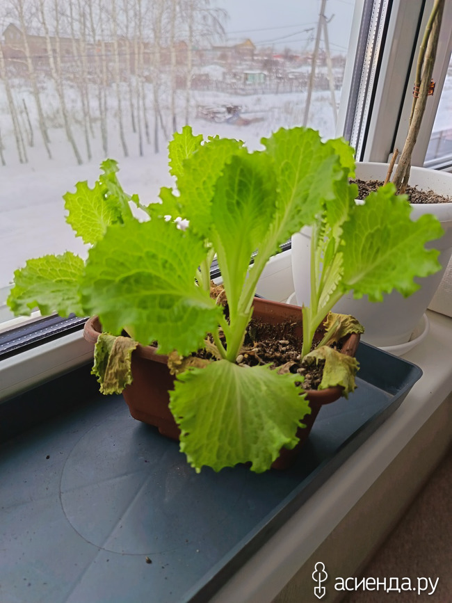 А вот салат не зря забрала домой с грядки. Щипаем потихоньку. На балконе неотапливаемом стоит.