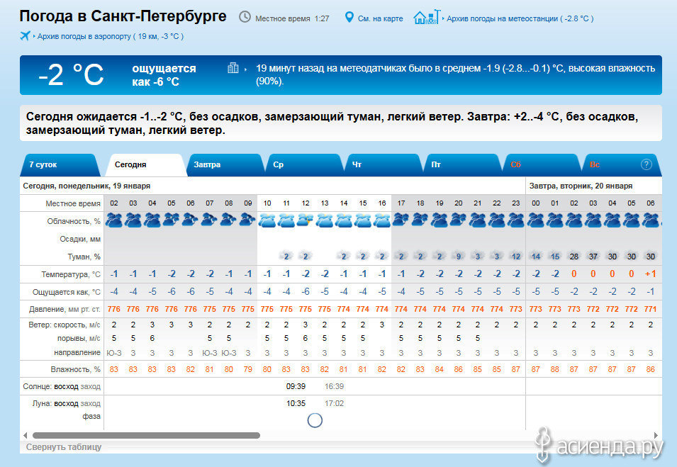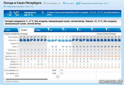 ..,....днем ожидается переменная облачность, небольшой снег, сильный туман, -7..-9°, ветер западный, умеренный. Давление заметно выше нормы. Возможны небольшие геомагнитные возмущения. Вечером - сильный снег. Ближайшей ночью переменная облачность, температура -9..-11°. Давление заметно выше нормы. Возможны небольшие геомагнитные возмущения