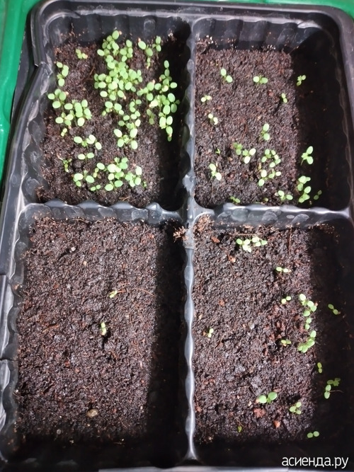 Взошла дружно и растёт быстро. Через две недели уже можно было рассаживать по отдельным стаканчикам.