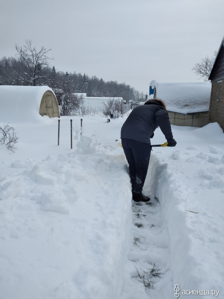 За праздники два раза выползали из-за праздничного стола на дачу. Снегопады в этот январь сильные. Столько снега у нас в Подмосковье давно не было. Если не чистить теплицы, то легко можно остаться без них в новом сезоне. Глубина траншеи-тропинки 50 см.