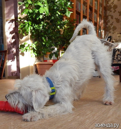 Пока Хоня там спал, Снежок его грызак стянул и развлекался. Такой мощный грызак Снежку не по зубам.