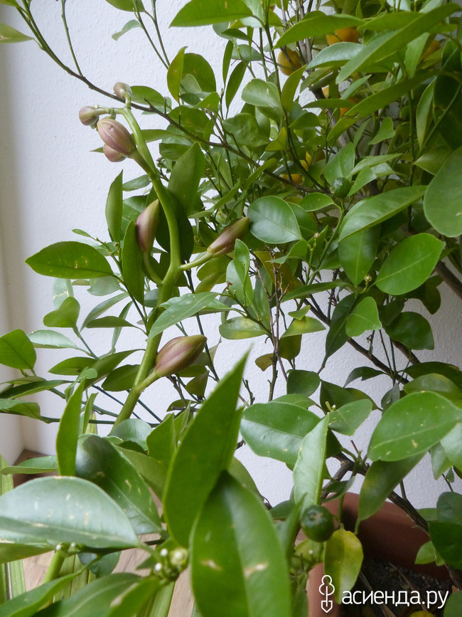 Цитрусовые спеют в этом году неравномерно. Что и неплохо. Все одновременно. Цветочки, зеленые и уже оранжевые.