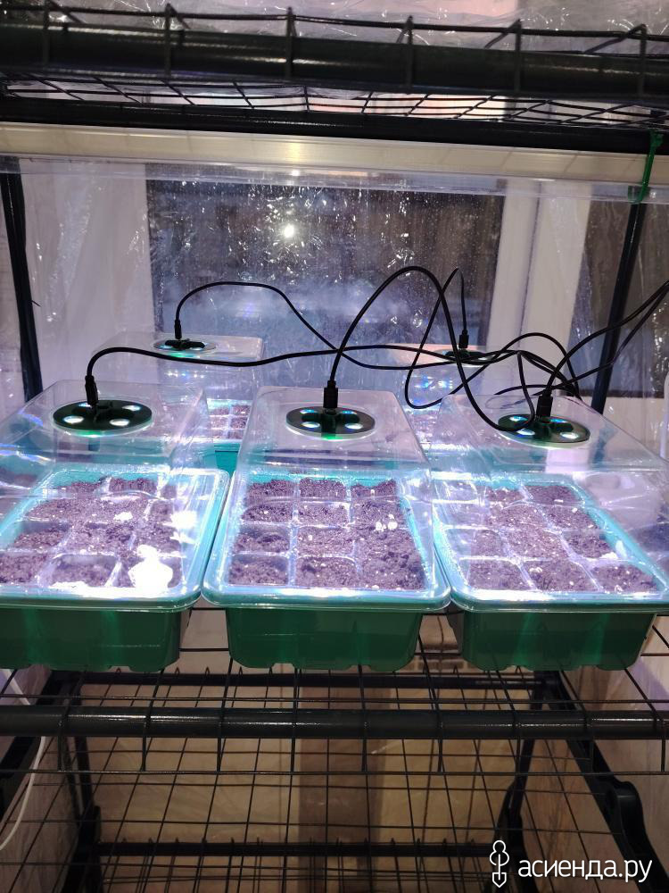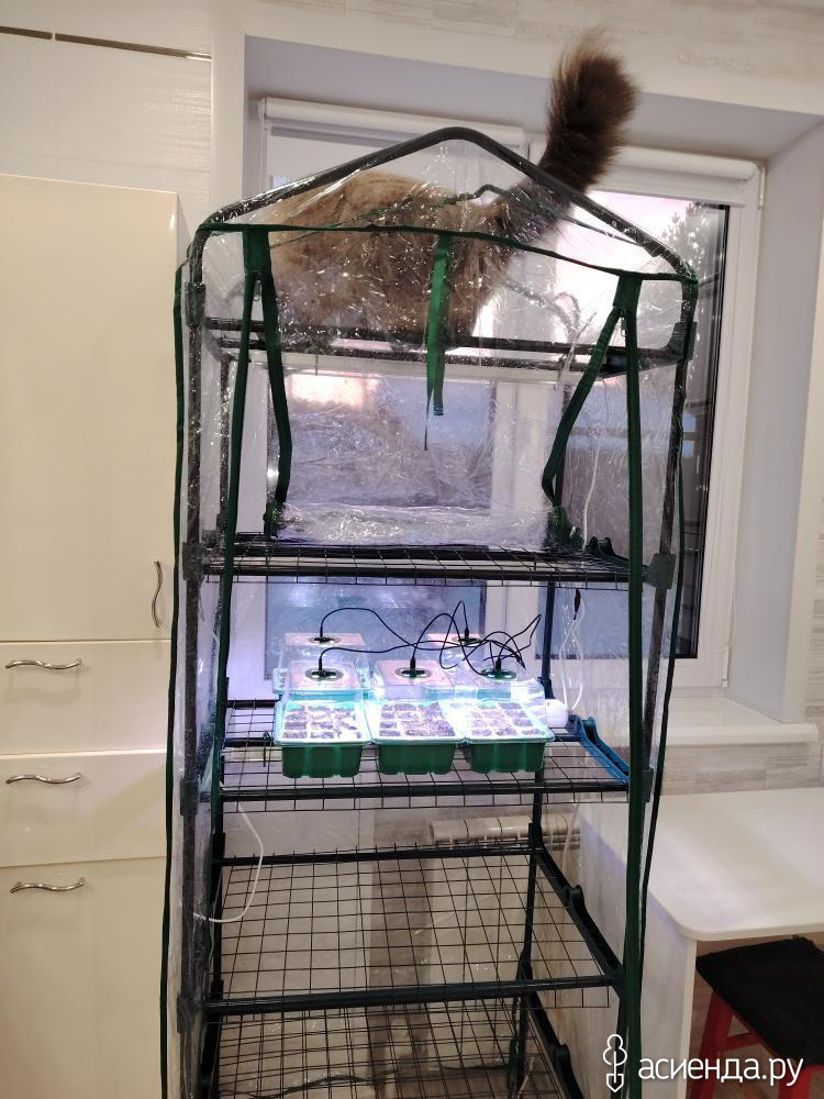 у меня 190 см стеллаж. Посмотрите на озоне "Стеллаж для рассады 5 полок (каркас), подставка для растений на балкон, стойка для цветов" фитолампы отдельно заказывали и сами уже крепили к стеллажу. Хорошо зарекомендовали себя минитеплички с подсветкой.