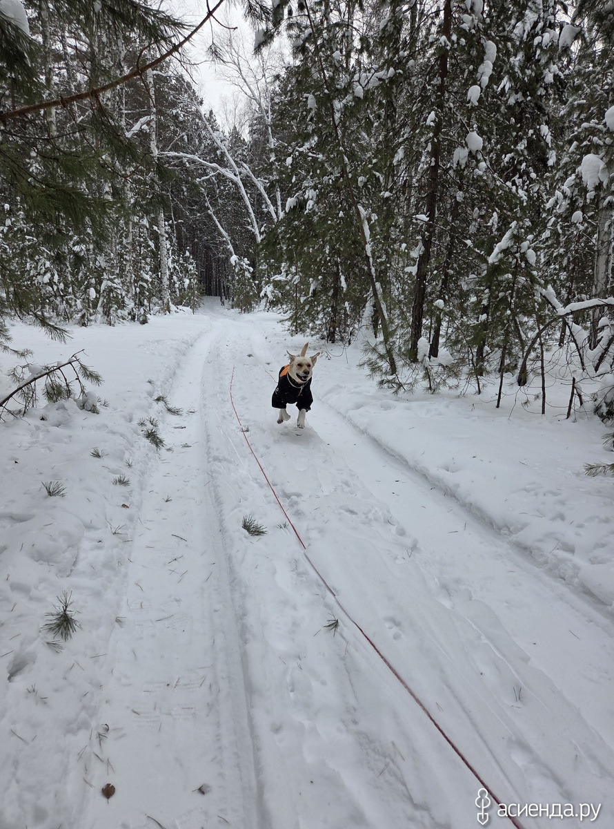 Народу мало. Одну женщину встретили и мужчину лыжника – Немо залип на них: ложится около лыжни и ждет. Кое как уговорами с вкусняшками по другой тропе увела.