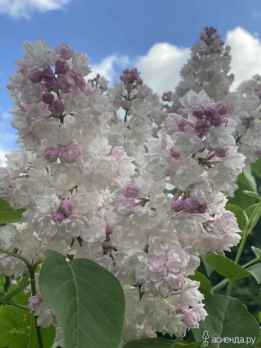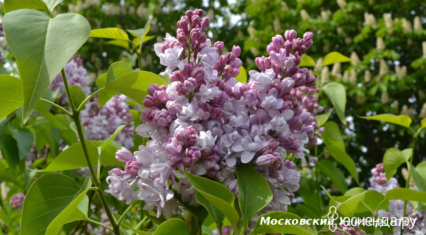 Ну и закончим мы с сиренями Колесникова в этой категории сортом «Утро Москвы». Данный сорт был выведен в СССР путем скрещивания сортов Эмиль Лемуан и Мадам Лемуан. Произошло это событие в 1938 году и в хронологическом порядке он должен бы быть в списке первым, но мы пошли другим путем.... Сирень получила свое название не случайно – она способна воссоздать атмосферу свежести и красоты раннего утра. Сорт с крупными махровыми цветками нежного розово-голубого оттенка, постепенно переходящего в белый. Соцветия пышные, ароматные, придают кусту особую декоративность в период цветения. Куст может достигать 5м, густой, хорошо переносит морозы.