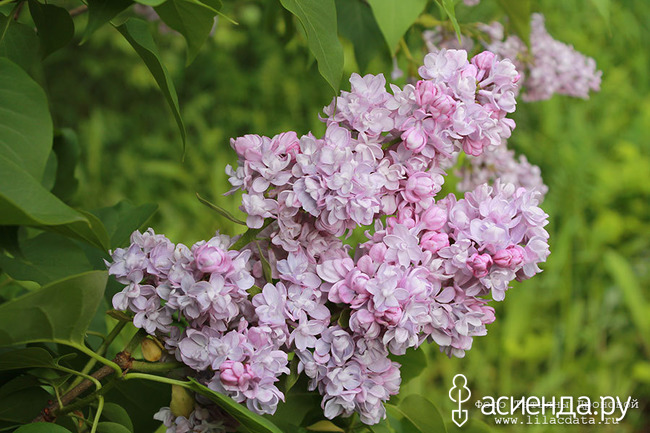 Следующий сорт имеет очень интересную историю. Это сорт"Защитникам Москвы". А история такова: сорт этот принадлежит авторству уже известного вам Леонида Колесникова, которыйскончался в 1968 году. А год обнародования у сорта 1986. Все дело в том что обнародовал его Владимир Миронович. Этот сорт очень похож на сорт ‘Память о С. М. Кирове’. Вспомним, что от скрещивания ‘Бель де Нанси’ с ‘Иваном Мичуриным’ было получено 8 перспективных сеянцев, среди которых хорошо нам знакомые ‘Красавица Москвы’ и ‘Память о Кирове’. Возможно, один из оставшихся безымянными сеянцев был в числе переданных В. Д. Мироновичу и зарегистрирован под названием ‘Защитникам Москвы’. Поэтому где-то пишут что сорт принадлежит авторству Колесникова, Где-то Мироновича, а где-то пишут о соавторстве. По параметрам куст высотой до 2 м (в возрасте 10-ти лет), пирамидальный. Лист крупный, сердцевидный, темно-зеленый. Длина цветоносных побегов 40-50 см. Цветонос прочный. Соцветие открытое, размером 18-20х12х15 см, плотное. Цветок диаметром 2,0-2,5 см, махровый, края загибаются вниз. Окраска бутона лиловая, цветка – лилово-голубоватая. Аромат средний. Цветение обильное, неремонтантное, с 3 декады мая. Сорт зимостойкий.