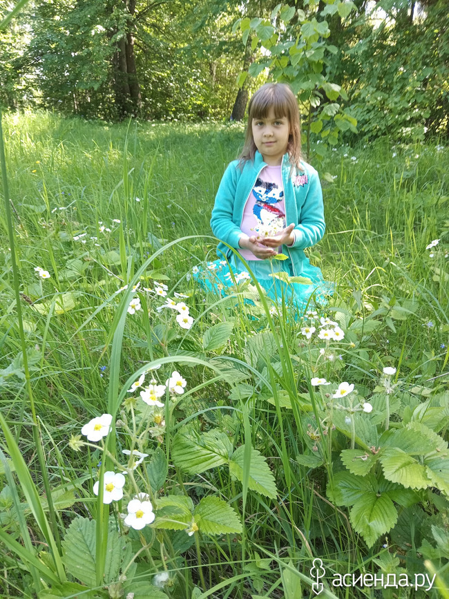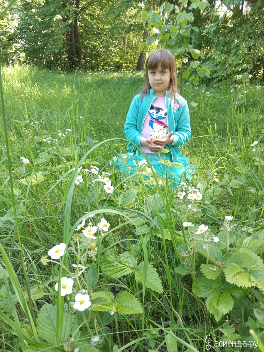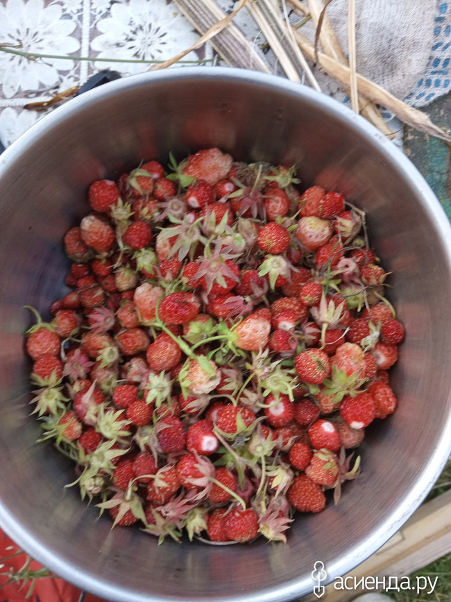 А вообще весь лес по краям у нас усыпан земляникой. Она конечно, сейчас сместилась из-за того что новые деревья создали тень. С прошлого года девчонок мы отправляем одних на осиновый пяточек в 2 метрах от объездной дороги. Раньше девчонки землянику собирали на развалинах церкви, но теперь там от старого ничего не осталось - ни развалин, ни берез, ни старых трав. Позапрошлый год был очень земляничный и меня подруга научила морозить такие мелкие ягоды в бутылках и хранить удобно и перевозить. Но вот эта самая простая лесная земляника смерзается соверщенно волшебным образом создавая какую-то кремовую структуру. Короче ушла она как мороженное через две недели после сбора.