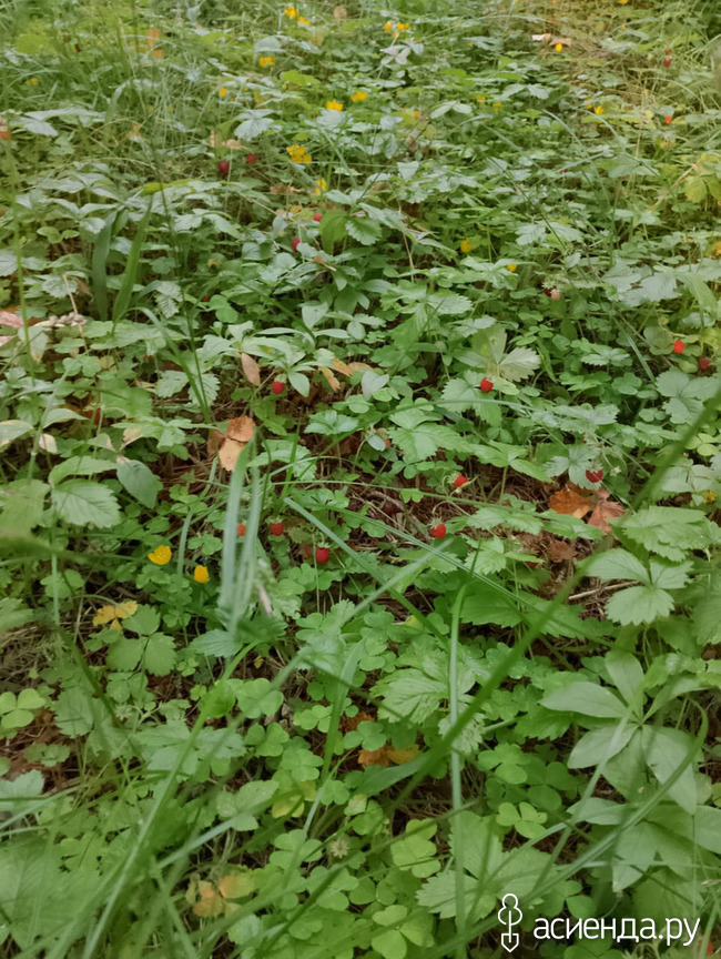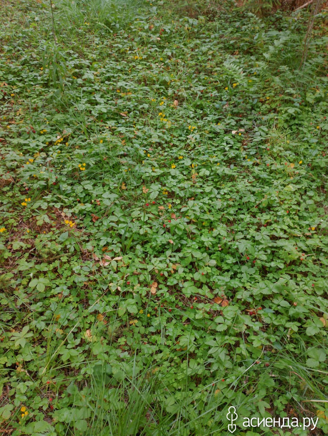 Территорию занимает достаточно приличную, но плодит только у дороги на полянке и вдоль вишневых зарослей в высокой траве. Под березами растет свободно, можно сказать земляничным газоном, но не плодит и даже не цветет.