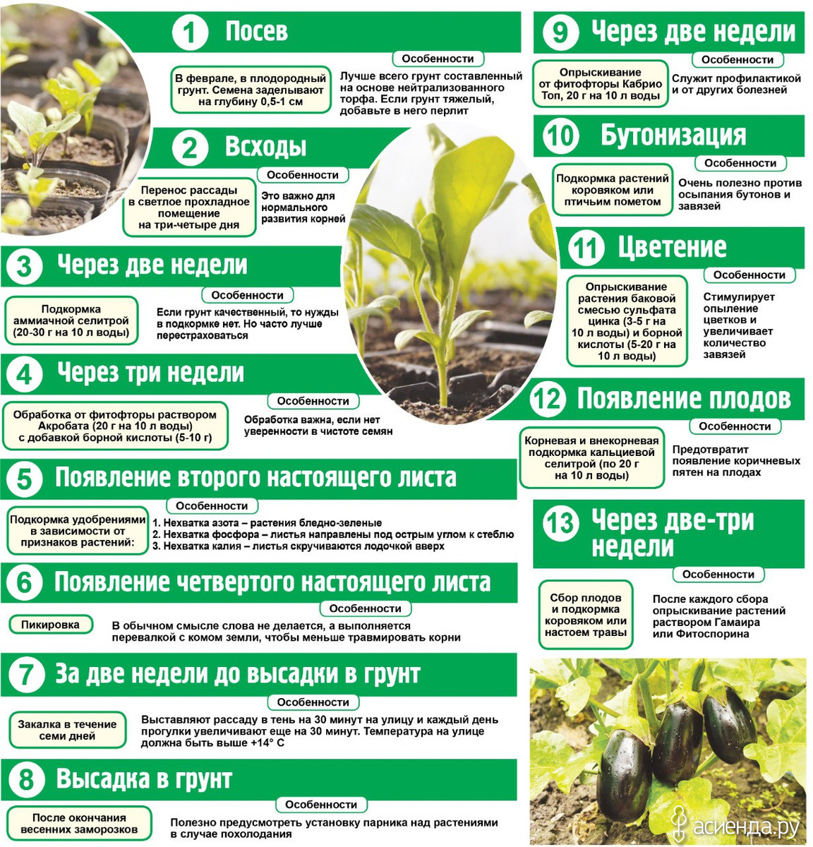 Света, баклам надо тепло ( теплица в наших условиях), много пить и вкусно кушать. Вот и все. Еще нашла такую таблицу, попытаюсь попридерживаться её рекомендаций в этом сезоне, поэкспериментирую