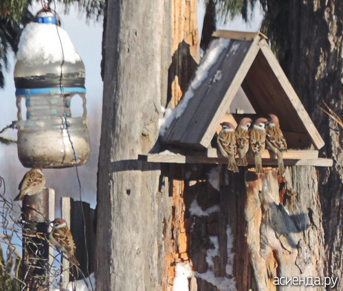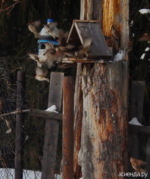 У нас воробьи любят с курами позавтракать, но зимой куры в сарае живут, воробьи не прилетают.