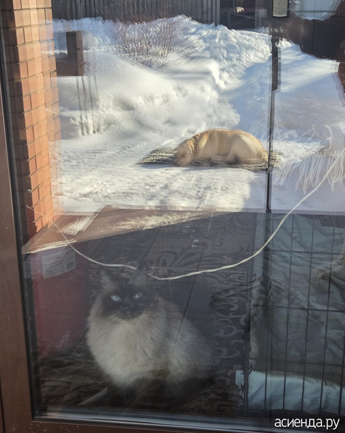 А у кота такое хитрое лицо, он то в тепле, дома