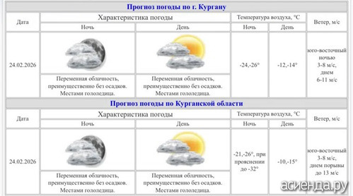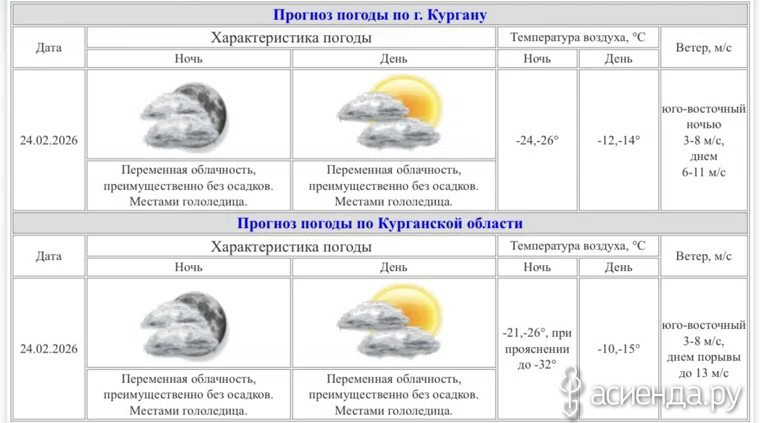 В Курганскую область возвращаются аномальные морозы.днем температура - 16, ночью 24 февраля опустится до -32 градусов при прояснении. Местами ожидается гололедица. Среднесуточные температуры воздуха ниже нормы на 7 градусов и более продлятся по 27 февраля. Аномально холодная погода ожидается в большинстве районов региона.