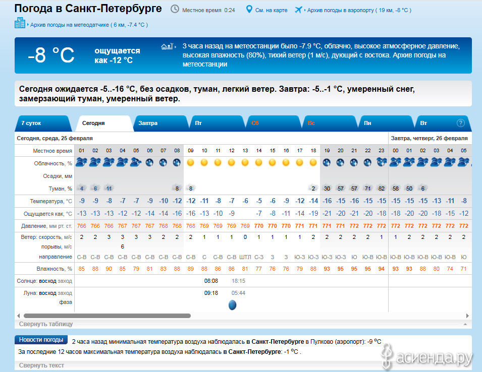 Народный календарь. Дневник погоды 25 февраля 2026 года