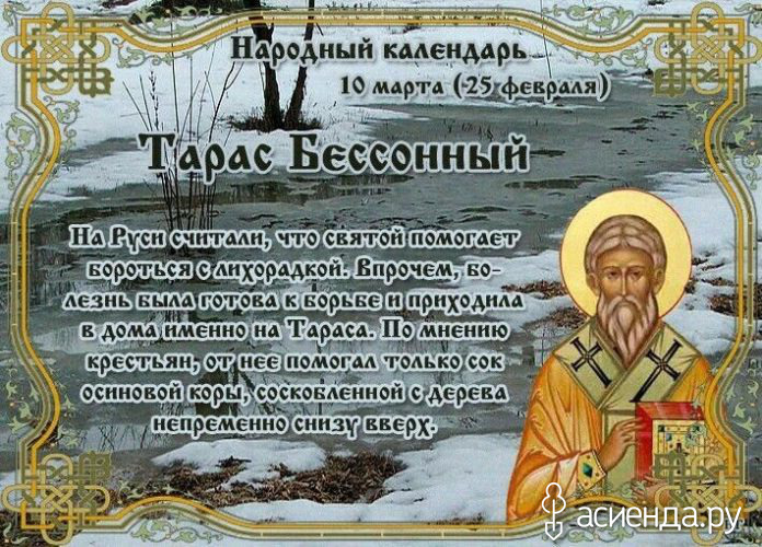 - Если на Тарасия выпадает снег, то перед Пасхой вся неделя будет дождливой и холодной