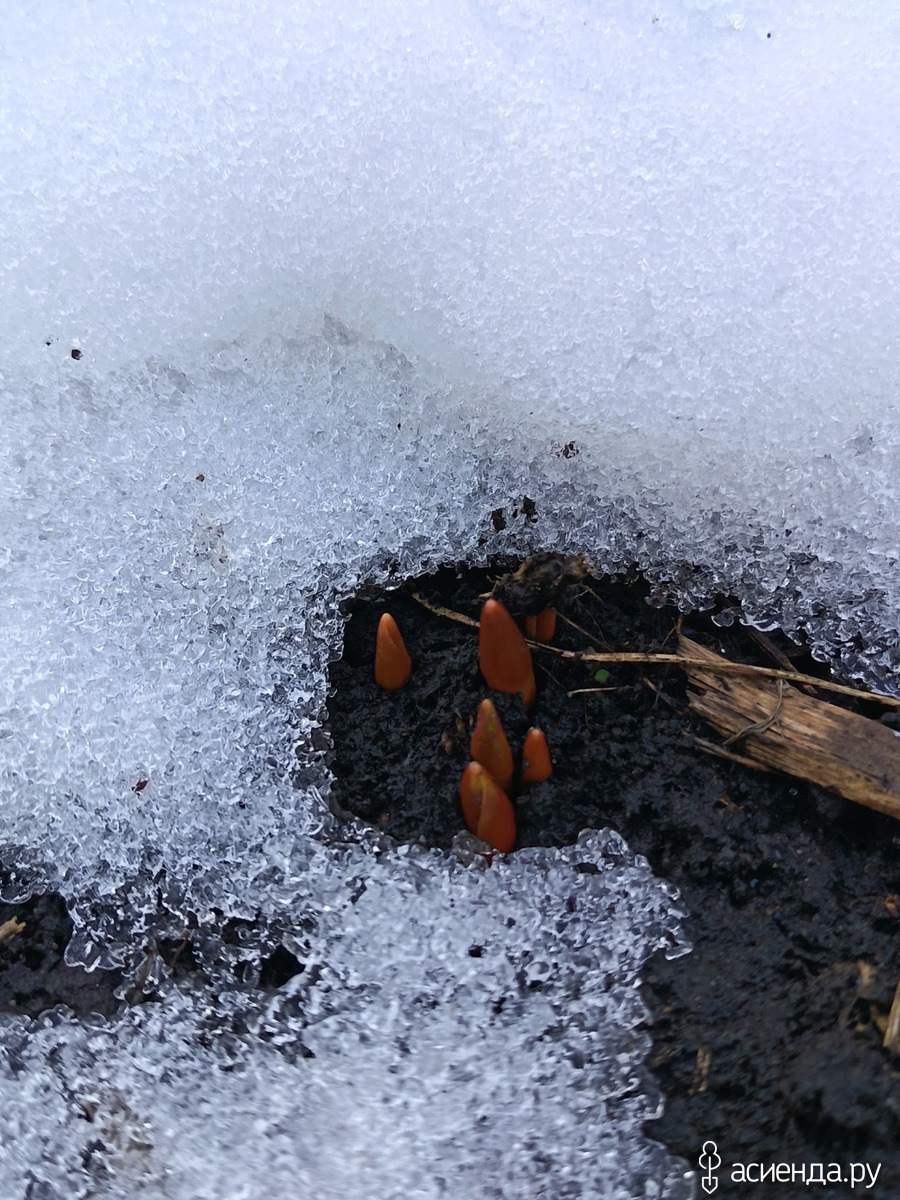 Вчера только откинула снег, где тюльпаны посажены, а сегодня вот, находка. Рождение новой жизни.