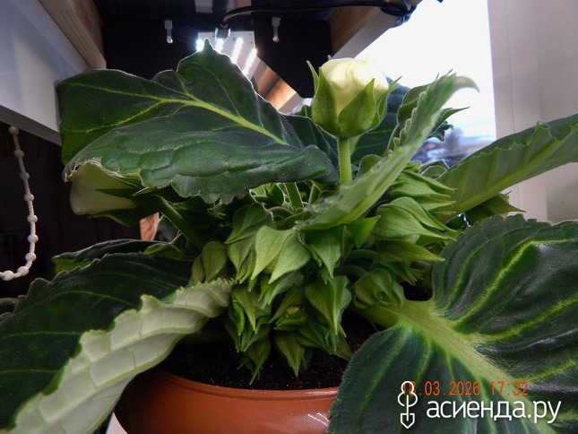 Наша глоксиния тоже нас радует, бутонов набрала очень много, и наверное завтра уже распустится первый цветок. Стоит под новыми лампами. Обычно только к маю набирает цвет.