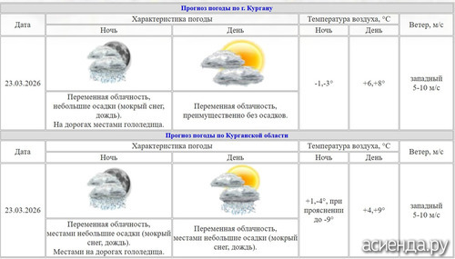 Погода в Кургане 23 марта переменчивая. В ночное время до -3 градусов, по области - до -9.