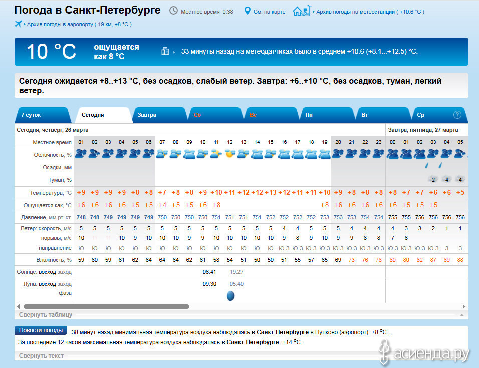 Температура воздуха ночью +5...+7 гр., днём +10...+12 гр., на побережье Финского залива местами до +7 гр.