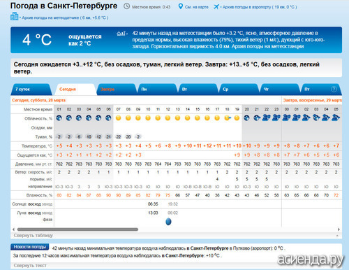 Температура воздуха ночью 0...+2 гр., днём +10...+12 гр., на побережье Финского залива местами до +7 гр.