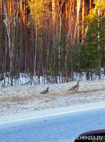 Ольга сегодня сфоткала по дороге в город копылух. Гуляют вдоль дороги. Косач ранее ходил, сегодня не видела его.