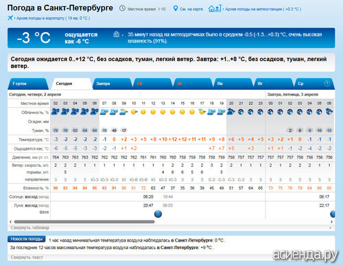 Температура воздуха ночью 0...-2 гр., днем +10...+12 гр., на побережье Финского залива до +5 гр.
