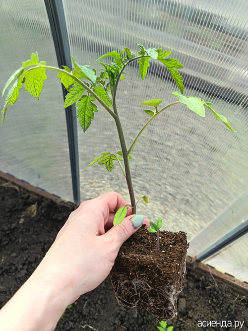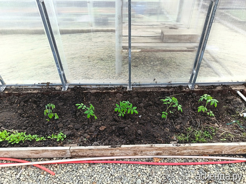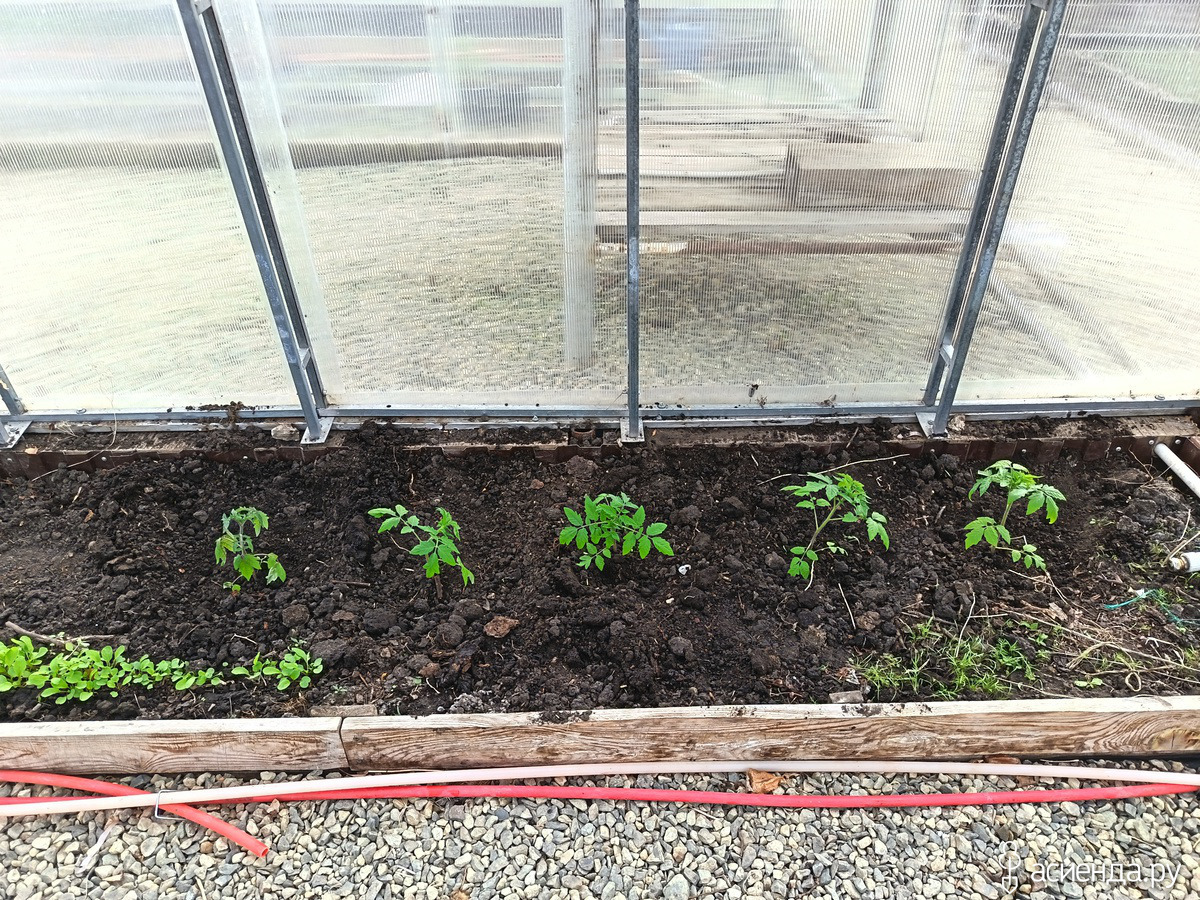 Высадила томаты в теплицу.
