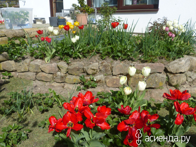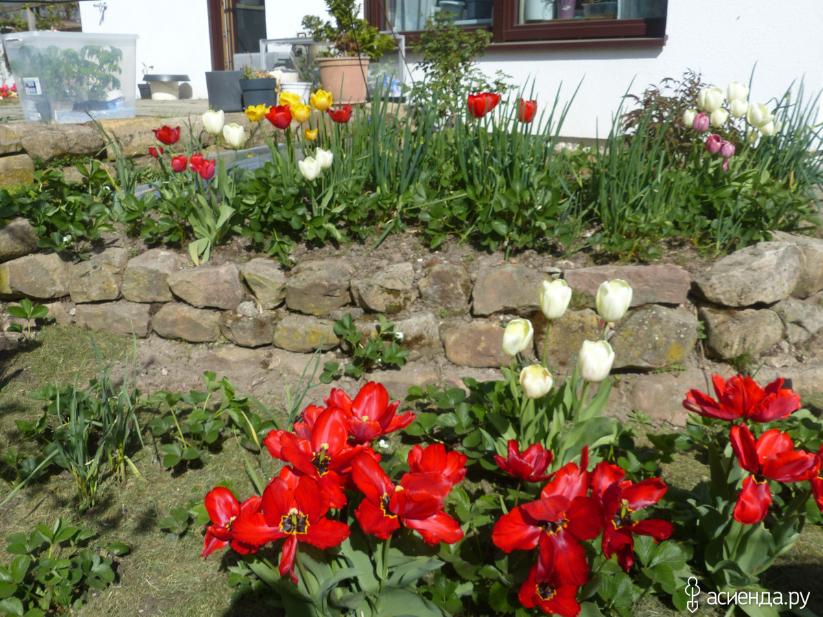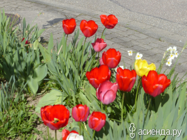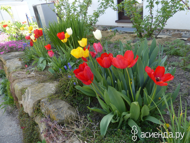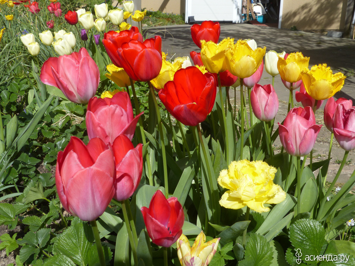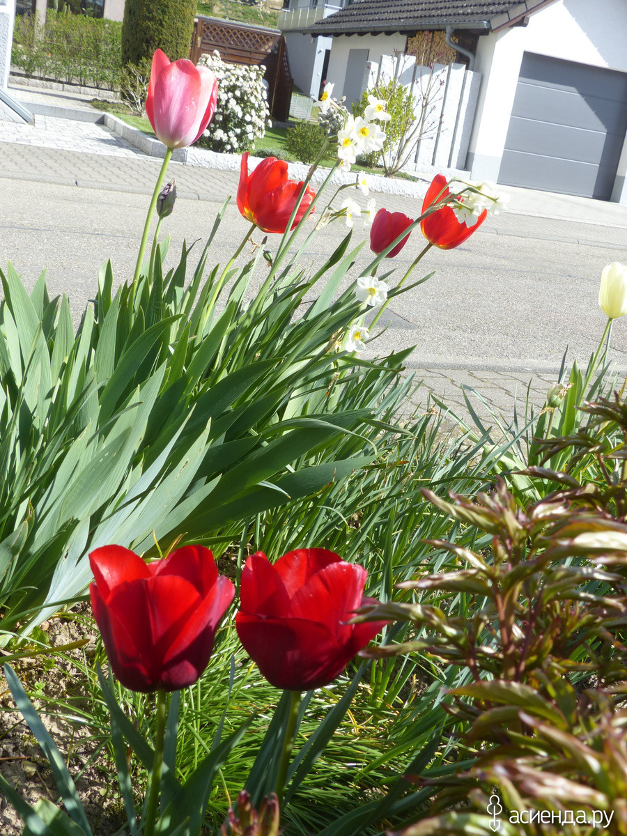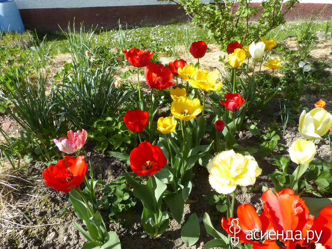 Красиво у тебя во дворе...солнечно, цветно. У меня тоже тюльпаны некоторые распускаются, другие осыпаются. Сегодня дождик тихий хороший, поливочный для земли. Днём тепло, ночью до +3 опускается температура.