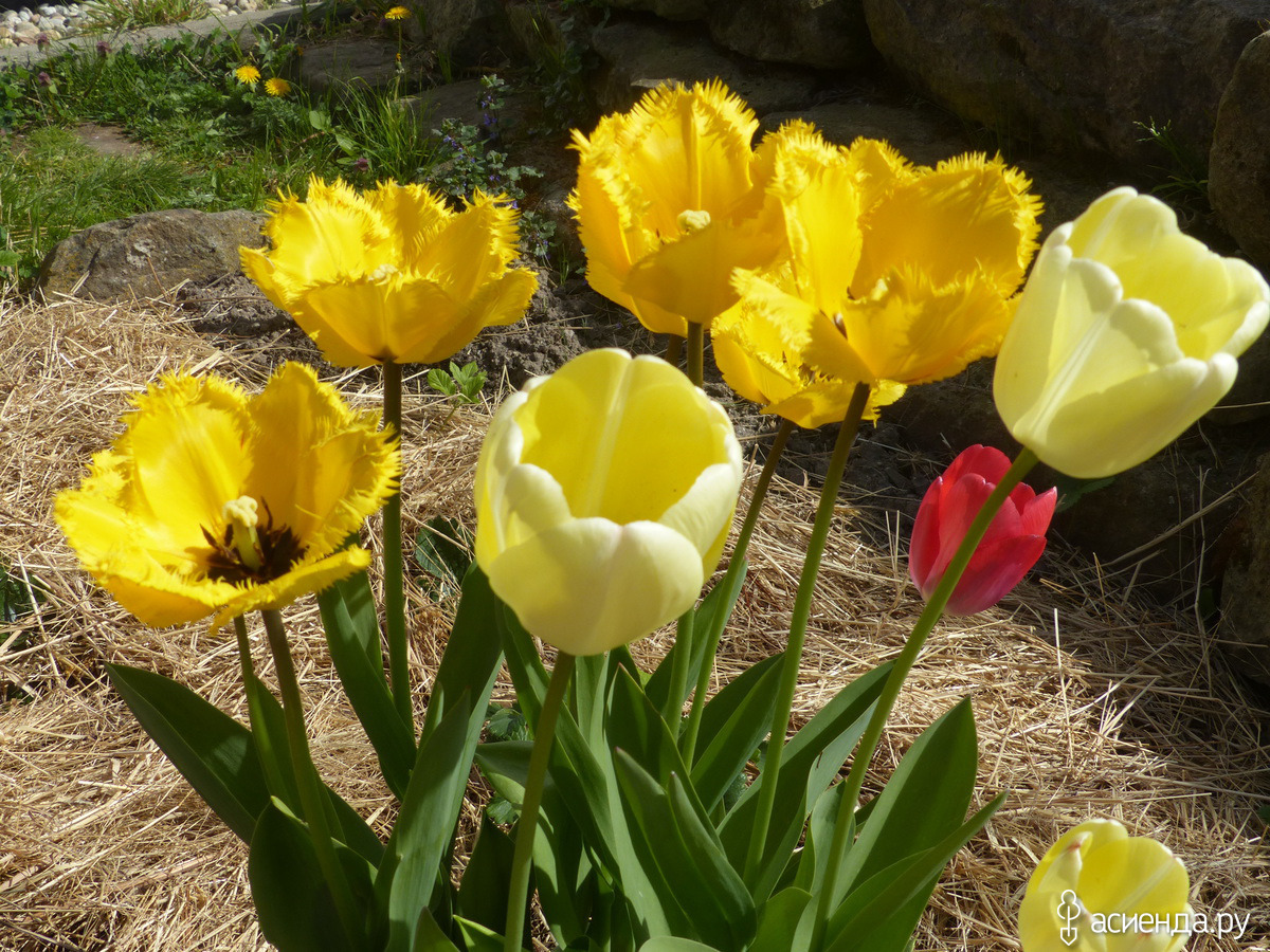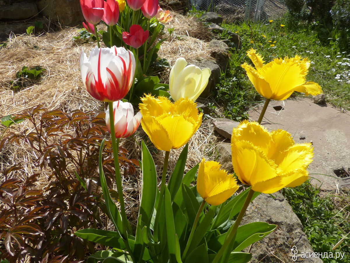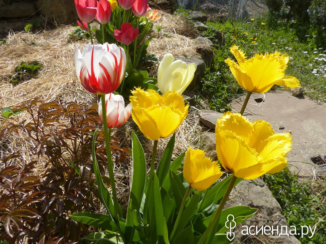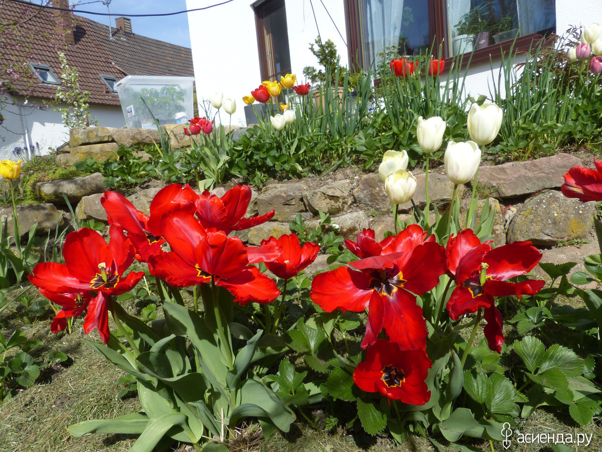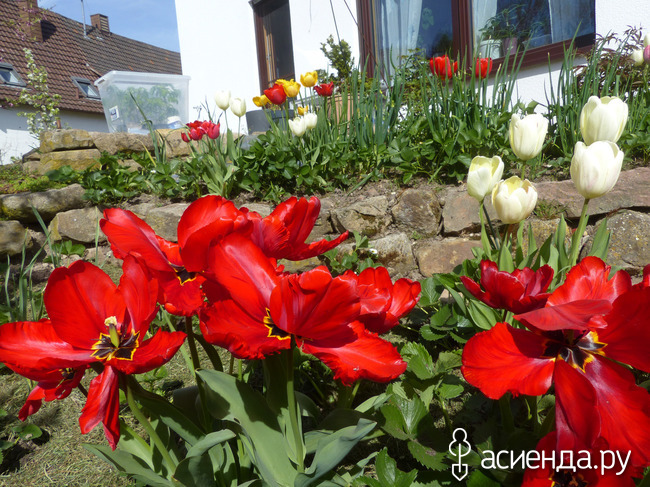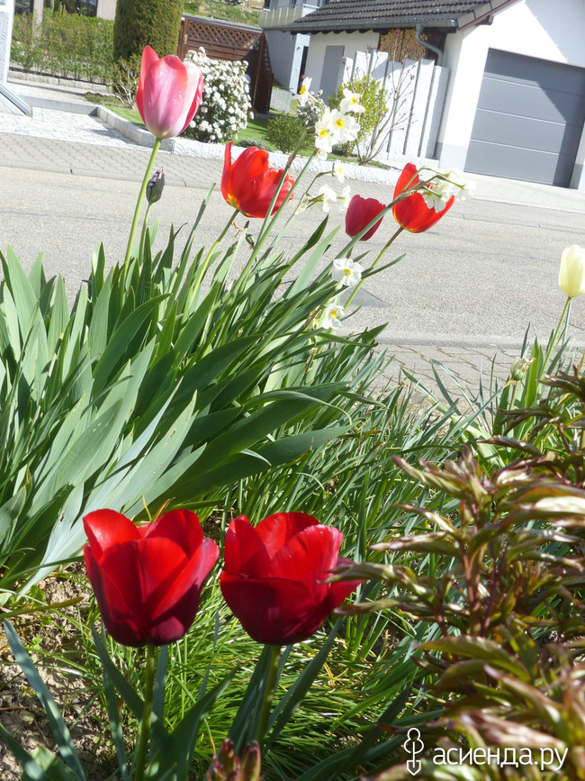 Красиво у тебя во дворе...солнечно, цветно. У меня тоже тюльпаны некоторые распускаются, другие осыпаются. Сегодня дождик тихий хороший, поливочный для земли. Днём тепло, ночью до +3 опускается температура.