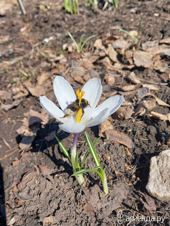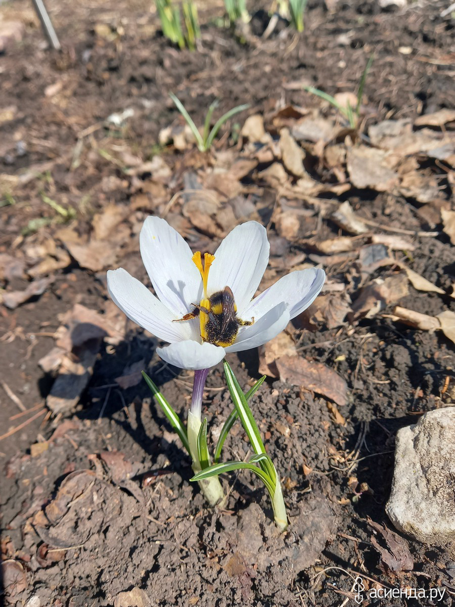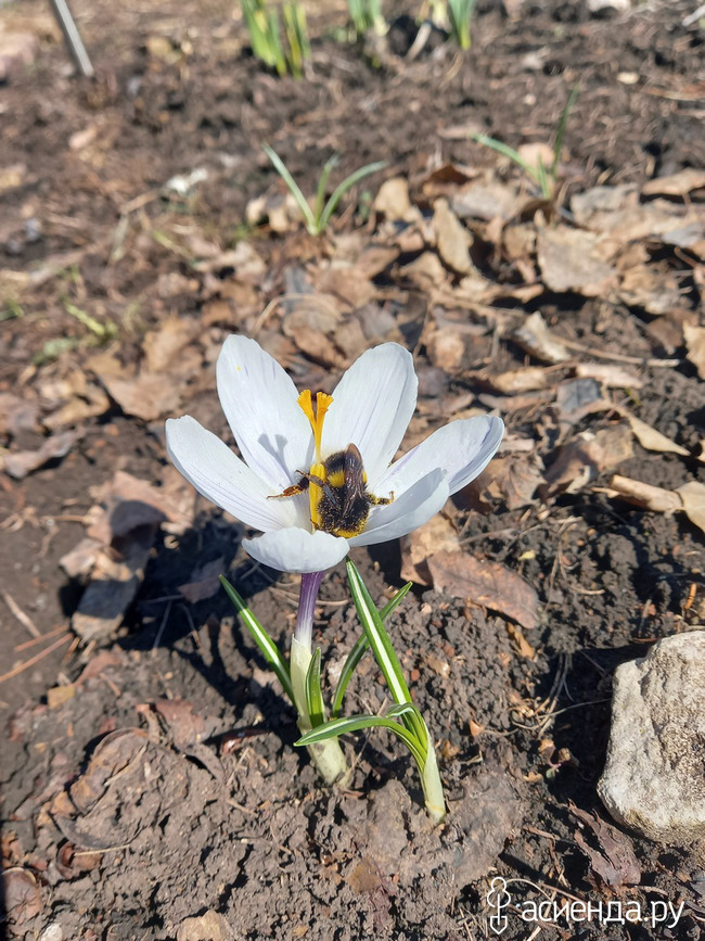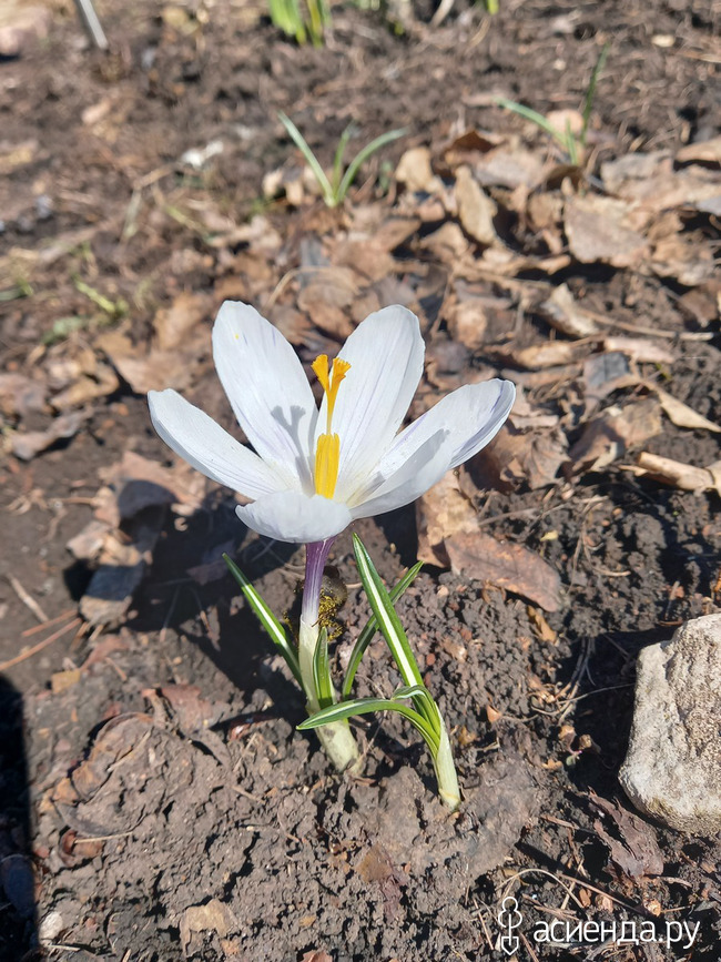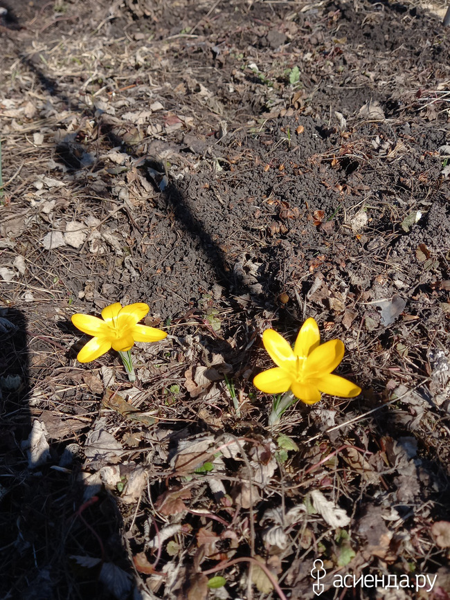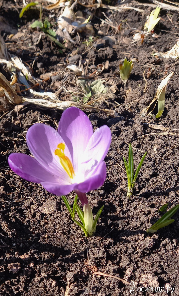 Пока я возилась в теплице. Солнышко выглянуло из-за рощи и поднялось по весеннему яркому небу. Крокусы! И я направилась к моей полянке.