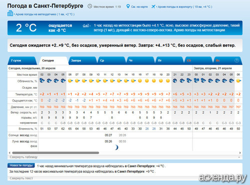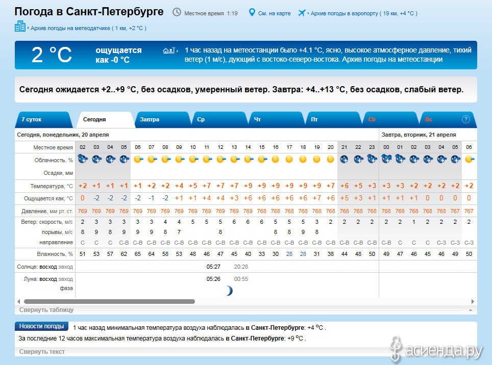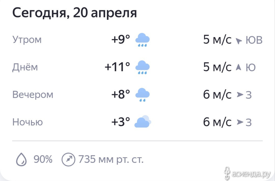Днем переменная облачность, +6..+8°, ветер северный, умеренный. Атмосферное давление в пределах нормы. Возможны небольшие геомагнитные возмущения