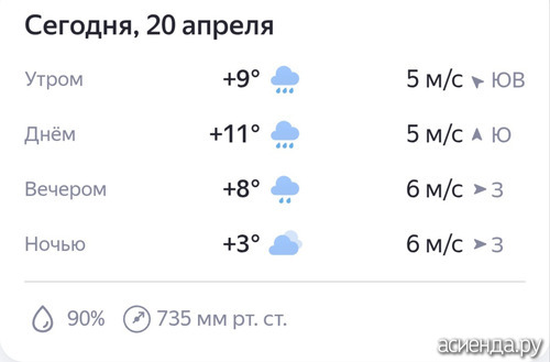 СЕГОДНЯ 20 АПРЕЛЯ