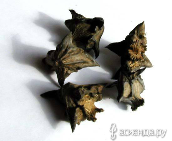 Используется водяной орех и в медицине. Он входит в средство против атеросклероза – трапазид. В свежем же виде чудо-плод используют в японской, китайской и тибетской медицине при диспепсии, почечных заболеваниях, импотенции, а также как мочегонное и общеукрепляющее средство. А в Китае и Индии все части необыкновенного растения используют в качестве желчегонного, потогонного, седативного, вяжущего, тонизирующего, спазмолитического и закрепляющего средства.