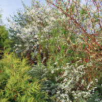 Удивляет и радует - уже несколько лет хорошо растут кипарисовики, хотя обычно не выдерживают нашего климата. Здесь пять разных сортов.